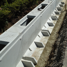 ○ 土留OS側溝は、防音型自由勾配側溝「OS側溝」に「カセットフロア(底版ブロック)」を現地でセットして構築される防音型土留自由勾配側溝です。 ○ 防音型土留自由勾配側溝「土留OS側溝」は、高炉スラグ微粉末を使用した低炭素なコンクリート製品です。