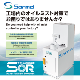 株式会社三明製作所は、転造技術に強みを持つローリングマシンの設計・製造・販売・メンテナンスを一括で提供し、 転造に関する総合コンサルティングメーカーとして、お客様をトータルにサポートしております。 当社は、高性能オイルミストコレクター「愛国機械Zeroシリーズ/Super Zeroシリーズ」を受け継ぎ、 オイルミスト回収装置『SORシリーズ』として製造販売をしています。 【製品特徴】 ■プレフィルター・リアフィルター・電気集塵機を一体化し、オイルミスト回収率95% ■高い回収率により、切削油の節約が可能 ■金属製フィルターはすべて洗浄・再利用可能で、廃棄物削減とメンテナンス効率化に寄与 ■工場レイアウトを邪魔しないコンパクト設計 ■プレフィルター目詰まり検知センサー(オプション)対応 ※製品情報は[PDFダウンロード]からカタログをご覧いただくか、お気軽にお問い合わせください。