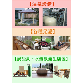 温泉・温浴設備・機器の総合メンテナンス 温泉・温浴関連機器・輸入販売 浴槽呂過循還設備設計施工 温泉・温浴設備プランニング ・ 設計施工 足湯の製作・販売、レンタル 温泉熱利用の省エネシステム工事 高濃度炭酸泉発生装置の製造・販売 高濃度水素泉発生装置の製造・販売
