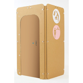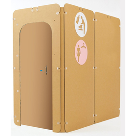 ≪特長≫ ○強化段ボール製のパネルを専用のプラネジでつなぐ構造で、簡単に組み立てができます。(2 名での組み立てを推奨) ○軽いので、設置後も担いで移動・移設が可能です。 ○パネルの継ぎ目は隙間のない構造で、強度とプライバシーを確保しています。 ○遠くからでも視認のしやすい、大型の「ピクトグラム」を付属しています。 ○設置場所に合わせて「入り口」の取り付け位置を変更することができます。 ○製品のコーナー部分はラウンド形状となっており、安全性と見た目の優しさを両立しています。 ○コンパクトな梱包で備蓄時にも嵩張りません。(1 梱包ごとにビニール袋に入っているため、長期間の保管や備蓄の際にも安心です) ≪主な使用場面≫ ・災害時用の備蓄に ・授乳室設置までの仮設用に (使用後リサイクル) ・お子さま連れが多い催事場での設置用に ・急なイベント開催で授乳室や着替えの場所が必要なときに ・授乳スペース内で複数人が授乳する場合の区分け用に ・移動式イベント、移動販売等の備品として ・ビニール製のテント等では強度やスペースが不安な時に