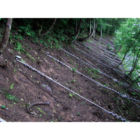 The "Tough Flexible Frame" stabilizes the entire slope and prevents collapse by anchoring the anchor bolts to a stable layer beneath the unstable layer and connecting the pressure plates installed above the anchors with wire ropes. It is possible to pass standing trees through the wire ropes arranged in a lattice pattern. This allows for construction with minimal tree cutting, preserving the natural beauty of the forest. The wire ropes have a low amount of coating adhesion, and the wrapping grips are coated with zinc and 10% aluminum alloy, providing excellent durability. 【Features】 ■ Minimizes tree cutting ■ Prevents sliding collapse of unstable layers and stabilizes the entire slope ■ Prevents falling rocks and promotes greening by installing thick nets ■ Easy to combine with rope net construction and mighty net construction ■ Excellent durability ■ NETIS registration number: SK-010018-V (registration period has ended) *For more details, please refer to the PDF materials or feel free to contact us.