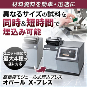 The "Opal X-Press" is a high-performance modular embedding press developed for embedding samples of different sizes simultaneously and in a short time. The modular design optimally controls the processes of each press unit. Even with embedding cylinders of different diameters, it can be connected and controlled in combination with up to four press units (including the basic unit) as desired. 【Features】 ■ Modular system allowing embedding of up to four different diameters ■ Independent control of simultaneous embedding ■ User interface with a 7" touchscreen using intuitive ATM user software ■ Dust guard that improves work hygiene by suctioning fine resin dust ■ Press unit featuring a comfortable sliding opening and closing system *For more details, please refer to the PDF document or feel free to contact us.