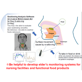 It happens that some food are mistaken by elders and then drop into their lungs. Some times it leads to serious pneumonia and thus becomes to be problematic for home/facility medical care for elders. This invention provides a non-contact quantitative analysis device to evaluate the swallowing function of elders by monitoring the movement of neck surface. Also, the device is useful to evaluate objectively if the food is delicious and if elders can swallow the food smoothly.