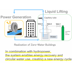 In factories, buildings, hospitals, commercial facilities, and water treatment plants, water is typically pumped to elevated storage tanks, which results in high electricity consumption. To address this issue, the proposed invention introduces a liquid lifting and power generation system that uses high-pressure fluid to increase the internal pressure of a storage chamber, enabling liquid to be transported to higher elevations without conventional pumps. ■Key Features of the Invention ・ Significant reduction in power consumption compared to conventional pumping systems ・ Superior safety and ease of handling compared to methods that use flammable gases