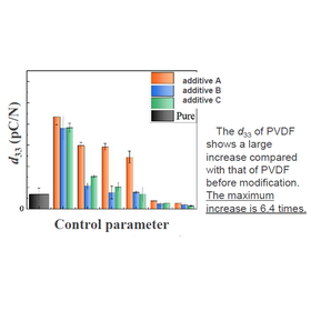 Piezoelectric sensors made of piezoelectric ceramics and polymers have been developed. Among them, polyvinylidene fluoride (PVDF) is a semicrystalline polymer composed of (CH2-CF2) repeating structures. It has attracted attention because of its low cost and excellent flexibility. While further improvement of piezoelectric properties is required, improvement of materials without compromising their flexibility has been studied. However, materials that meet the needs of the industry have not been developed. As a result of repeated research, we succeeded in developing a modified PVDF with significantly improved piezoelectric properties. The development of a new material was made possible by adding additives to the raw material PVDF. We confirmed that the piezoelectric properties of this material were increased without losing the excellent flexibility of the conventional material. This paves the way for the development of more sensitive sensors, which are expected to be applied in the medical device and robot industries.