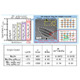 Thermoelectric (TE) materials, which have the ability to convert heat into electricity, play a significant role in the utilization and management of thermal energy. Mg2Sn is a potential thermoelectric (TE) material that exhibits environmental compatibility since it is not-toxic and .not contains rare materials. However, as existing Mg2Sn materials have low electric conductivity and high thermal conductivity, it results in low zT value. This invention is related to Mg2Sn material contains Sb and B as doping materials, and Mg vacancies with high Power Factor and low thermal conductivity, which contribute to improve zT value. zT > 0.8 are achieved by our materials mentioned above.