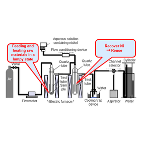 Conventional method of producing hydrogen gas from organic matters such as biomass or plastics, is composed of mixing calcium hydroxide and nickel hydroxide, applying mechanochemical processing (grinding), and then heating. However, since the pulverization process requires energy and equipment, technology development with further cost reduction was expected. This invention is about a method of producing hydrogen gas from organic materials such as biomass and plastics at low cost without requiring a grinding process. Organic materials such as biomass and plastics are pyrolyzed in a lumpy state to generate pyrolysis gas, and then this gas is heated with an aqueous solution containing nickel to generate hydrogen gas. In addition, the nickel added during heating can be recovered and reused.