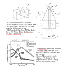 So far, the laser doppler vibrometer or the accelerometer using microelectromechanical system is known to be the most high sensitive vibrometer with actual technology. However, many vibrometers can’t be used in one object due to its high cost. On the other hand, the strain gauge is known to be cheap but the sensitivity is not enough high in order to detect abnormal vibration. This invention has focus on bending a magnetic material can generate a high sensitive permeability variation where it can be detected as HF impedance variation, and the shape of cantilever. This invention can provide high-sensitivity vibration sensor at low cost.