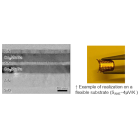 Co-based Heusler alloy such as Co2MnGa or Co2MnAl has attracted attention as candidate materials for high-sensitivity sensor and high-efficiency thermoelectric conversion element thanks to their large anomalous Nernst and Hall effects. In order to realize these excellent properties, it is thought that a single crystalline bulk material or a thin film grown on a single crystalline substrate is necessary. Thus, such single crystalline samples have been produced. Considering that those materials are applied to actual devices, it is necessary that a polycrystalline film, which does not use a single crystalline substrate, shows the property equivalent to those of single crystalline material. This invention is able to provide a “polycrystalline Heusler alloy thin film" that does not require a single crystalline substrate, while showing the properties of anomalous Hall angle (θAH~7.5%) and anomalous Nernst coefficient (SANE~5μV/K) comparable to a single crystalline thin film. It can promote the control of crystal orientation and the improvement of crystallinity by sandwiching the polycrystalline layer with an insulating AlN layer.
