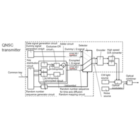 In recent years, with the development of internet-based business, personal and confidential information are transmitted through optical communication network. It is becoming important to ensure the information security as the optical communication network increases in speed and capacity. Quantum Noise Stream Cipher (QNSC), which uses the quantum noise in light, is known as a physical layer optical cryptography with a high transmission speed. However, since it uses strong optical signal, it cannot achieve the perfect masking effect by quantum noise, so there is a possibility that some information in the random number sequence used for encryption is leaked to an eavesdropper. This invention is able to provide an optical secure communication system and device that are more secure and capable of high-speed transmission than the conventional QNSC by spreading the QNSC signal on the time axis. In the present invention, the QNSC signal is spread over time using a common key at the transmitter, and the timing of the received QNSC signal is corrected by using the common key shared in advance at the receiver. It is thus possible to achieve the optical secure communication with higher security and higher speed by also encrypting the random number sequence used for encryption.