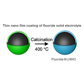 Lithium-ion battery (LIB) makes part of our live through a wide range of applications such as smartphone, mobile battery, laptop PC, car, etc. In this context, there are constant requests for performance improvement, such as operation at higher voltage. It is known that operation at high voltage results in a decrease in battery capacity and in cycle retention rate due to side reaction between the electrolyte and the positive-electrode active material. This invention overcomes the conventional issues by coating the positive-electrode active material with a layer. This coating layer reduces side reactions, which results in more stable operation at high voltage than conventional technology. This invention can improve for example the charge/discharge cycle characteristic of high-potential spinel oxide positive electrode, which is a LIB positive electrode material that does not use cobalt metal having a supply chain risk. Therefore, it can create high energy density storage battery which is low cost & risk-free metal resources.