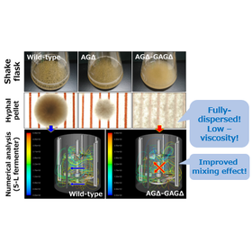 Filamentous fungi (e.g. Aspergillus oryzae) are well-used for production of useful proteins and small molecules in industry. However, it is well-known that hyphal aggregation during the liquid cultivation often prevents from growing with high density, resulting in low productivity. This invention discloses a mutant fungus, in which α-1,3-glucan synthase (AGS) genes plus the genes on galactosaminogalactan (GAG) cluster are deficient. AGS deficient fungi (AGΔ) showed a highly dispersed property [1]. By inducing further deficiency in genes on GAG cluster, the mutant (AGΔ-GAGΔ) shows a fully dispersed state in liquid culture. Further, this phenotype contributes to well aerobic conditions during cultivation, resulting in increasing growth of cells and substance production thereby.