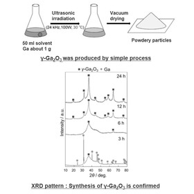 γ-Gallium oxide (γ-Ga2O3) is one of the metastable structures of gallium oxide and has excellent catalytic properties. However, it was difficult to be synthesized. In the conventional method for producing γ-Ga2O3, gallium nitrate hydrate was dissolved in distilled water with urea and baked at 500ºC. However, this method required a facility for high-temperature treatment and had a problem of increasing production costs such as equipment costs. The present invention makes it possible to provide a method for producing gallium oxide at a low temperature and a simple process, thereby reducing production costs. It is characterized in that a raw material solution containing liquid gallium and a reducing agent is irradiated with ultrasonic waves. Thus, particles of gallium can be refined, and particles having crystals of γ-Ga2O3 can be formed on the surface thereof. As a result, the baking process and the complicated separation and cleaning process are not required, the manufacturing cost is reduced, and γ-Ga2O3 can be produced by a simple process at a low temperature.