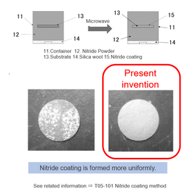 Conventional nitride coating methods include CVD (chemical vapor deposition) and PVD (physical vapor deposition). However, there is a problem that the manufacturing process is complicated and the work is not efficient because pressure adjustment and atmosphere replacement by vacuum equipment are required. Therefore, the nitride coating in the atmospheric pressure has been developed, but there is a problem that the surface is uneven. The present invention shows follow features, and it can solve above problems. ・ TiN(Nitride coating) is formed by microwave process. ・ Vacuum process is not needed. ・ Nitride coating is formed more uniformly.