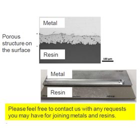 Conventional technologies for joining metal and resin include mechanical fastening with rivets, bolts, nuts, etc. and adhesive bonding, but the former has problems such as poor airtightness and increased number and weight of parts in the bonding area, while the latter has low adhesive strength due to the lack of adhesives for thermoplastic resins and low reliability in long-term use. The present invention relates to a technology for joining resin and metal simply, firmly, quickly, and at low cost, which differs from the above methods in that it is a dry process, does not require expensive equipment, and is not a wet process, thus eliminating the need for waste liquid treatment.