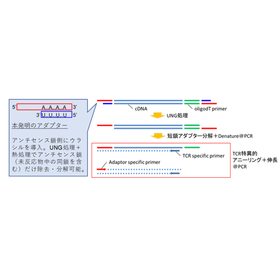 In comprehensive gene expression analysis such as T cell receptor (TCR) repertoire analysis, it is important that target specific and non-biased gene amplification products are obtained. Conventional methods often ligate adapters with restriction enzyme site to synthesized cDNA ends and treat adapter-ligated cDNAs with said restriction enzyme before specific amplification. In such methods, however, unused and untreated adapters often inhibit target specific and non-biased amplification. This invention performs target specific, non-biased gene amplification by combination of uracil-containing adapter and uracil DNA glycosylase (UNG) treatment (Fig 1).