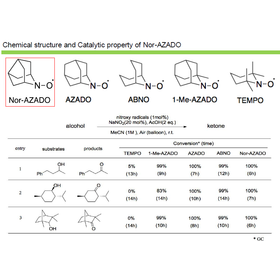 Alcohol oxidation is one of fundamental reactions in organic chemistry. This reaction is especially useful for synthesizing high-valueadded compounds such as medicine, pesticide, perfume and so on. Although, TEMPO and the related compounds featuring AZADO skeleton (e.g. AZADO, 1-Me-AZADO, and ABNO) are often used as alcohol oxidation catalyst , there are some problems concerning catalytic activity and reaction efficiency. This invention provides novel alcohol oxidation catalyst “Nor-AZADO” which can effectively oxidize sec-alcohol as well as n-alcohol using air as the terminal oxidant.
