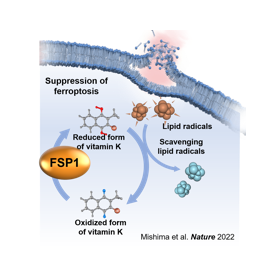 Ferroptosis is a form of regulated cell death associated with neurodegenerative diseases (e.g. Alzheimer's disease) and organ damage and is attracting attention as a therapeutic target. In this study, we found that vitamin K (especially the reduced form), a functional food ingredient, has a potent preventing effect on ferroptosis. Although a higher intake of vitamin K than those from the diet would be required to exert the anti-ferroptotic effect, vitamin K can be safely used even at high doses due to the no harmful effect reported. Thus, high-dose vitamin K supplementation is expected to be commercialized as a dietary supplement, functional food, and medicine.