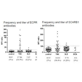 Conventionally, diagnosis of Takayasu's arteritis has been made by angiography, etc., and a simple method for diagnosis by blood or other means has not been established. The inventors have identified two types of anti-vascular endothelial antibodies (AECA) that appear in patients with Takayasu's arteritis. These antibodies are considered useful as diagnostic markers for Takayasu's arteritis.