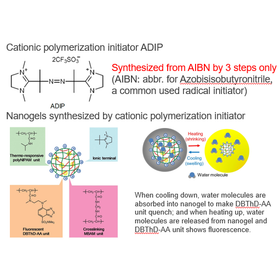 Cationic polymers are known to be used as nucleic drug delivery carrier because they are ease to be introduced into cells. However, it has been reported that the cationic polymers may inhibit cell proliferation by unspecific binding to intracellular proteins. This invention provides cationic polymer nanoparticles (nanogels) for intracellular delivery without inhibiting cell proliferation, by conducting radical polymerization reaction using a cationic polymerization initiator ADIP. Properties of NIPAM-based cationic nanogels synthesizing through ADIP: ・Can be delivered into many kinds of cells (e.g. HeLa) simply by mixing cells and the nanogels without special treatment ・In cells, nanogels do not effect the cell division or the differentiation of the brown adipocyte ・Intracellular temperature can be measured because of the heat-sensitive unit NIPAM