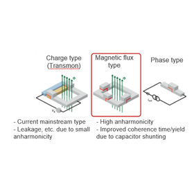 The superconducting quantum bit is composed of a single or multiple superconducting tunnel junctions (Josephson junctions). Research and development of typical charge type and magnetic flux type qubits are active. The current mainstream of high integration is Transmon, a modified version of the charge type, which has advantage of long coherence time, but has disadvantage of small anharmonicity, which can cause error. On the other hand, the magnetic flux type has advantage of large anharmonicity, but has disadvantage of short coherence time. Adding a shunt capacitor to increase coherence time causes increased footprint (the area occupied by a single qubit). This invention solves above problem, and it is about a technology that can achieve high integration with a small footprint while maintaining a practically tolerable coherence time and anharmonicity.