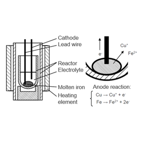 Recycled smelting using steel scrap can significantly reduce carbon usage and CO2 emission compared to current method, and it is an effective mean to reduce the actual increasing amount of steel scrap. However, the contamination of tramp elements, such as Cu/Ni/Sn, which are difficult to remove by oxidation and evaporation, causes the property and workability deterioration of steel material. In addition, since tramp elements are concentrated each time the steel scrap is recycled, they become the cause of the inability to increase recycling rate. The conventional method of copper removal using sulfide flux has been considered, but this is a batch process using a large amount of sulfide. This invention is about a technology to promote ion separation of Cu in molten iron into molten slag using electrochemical method, which enables in principle continuous processing. Moreover, not only purification of molten iron but also recycling of recovered electrodeposited copper can be considered.