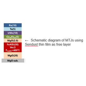 TMR sensor is known to be a high sensitivity magnetic sensor which uses the tunnel magnetoresistance effect (TMR) in magnetic tunnel junctions (MTJs). The TMR sensor performance can be controlled by controlling the magnetic anisotropy (HK) of the free layer. Therefore, it is expected to be applied to the bio-magnetic measurement device that detects the weak magnetic field of a living body at room temperature, the battery level detector for electric vehicle, non-destructive inspection to detect the rupture or deterioration of reinforcing steel bar in concrete structure, etc. NiFe alloy, CoFeB alloy and CoFeSiB alloys have been conventionally developed as free layer of MTJ devices for TMR sensor, but higher sensitivity and lower cost are required. This invention focused on FeSiAl alloy (Sendust) to produce the Sendust thin film of nanometer order thickness which was not able to fabricate. Therefore, this alloy is applied to the free layer to fabricate the MTJ devices that achieve the same level of sensor sensitivity as NiFe alloy, etc. It has been also revealed that the soft magnetic property is excellent over a wider range of composition compared with conventional Sendust.