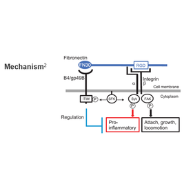 Conventional immune checkpoint (CP) inhibitors (e.g. PD-1 and CTLA-4 inhibitors) have revolutionized cancer immunotherapy, but are ineffective in approximately 40-80% of patients and have side effects such as autoimmune inflammation. The myeloid CP molecule LILRB4 (B4) has the unique property of being involved in immune evasion of cancer while also being involved in the exacerbation of autoimmune diseases, and is expected to be a new drug target, but its ligand was unknown. The present invention identifies fibronectin (FN) as the only physiological ligand for B4 and finds that immune control is possible by inhibiting the binding of B4 to FN, and relates to a novel CP inhibitor based on this finding. Following patterns can be considered for immunoregulation by blocking the binding between B4 and its ligand FN : (1) FN analog (competitively binds to B4-FN) (2) Anti-B4 antibody (acts on B4 and inhibits B4-FN binding) *Company X has Phase 1b data for its in-house anti-B4 antibody in cancer immunotherapy. Data disclosure may be possible through negotiation (terms to be determined). (3) Anti-FN antibody (acts on FN and inhibits B4-FN binding) Further, B4 as a biomarker for lung cancer patients’ prognosis prediction was verified by our original B4 monoclonal antibody that inhibits B4-FN binding (data not shown).