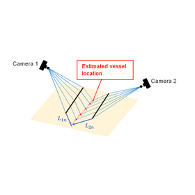 In today's clinical medicine, blood sampling is frequently used to diagnose and treat diseases, and the problem of shortage of medical workers has been pointed out. In addition, it is difficult for clinicians to find blood vessels with the naked eye in some patients, and there is a risk of failure in the procedure, as well as serious problems such as needlestick injuries and infections caused by blood contact. To solve these problems, automated robotic blood sampling may be effective. Various types of blood sampling robots have been studied, but many automated puncturing robots use ultrasonic diagnostic imaging equipment. In order to prevent the spread of infectious diseases, it is ideal to estimate the position of blood vessels and achieve automated puncturing without contact with patients. The present invention relates to a method for identifying the position of three-dimensional blood vessels using two infrared cameras without complete contact. By considering the difference in refraction depending on the viewing direction of the cameras, it became possible to identify the position of blood vessels with high accuracy.