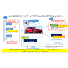 As represented by the microphone, the industrial application of the equipment using the sound wave for the information acquisition of the surrounding environment is carried out. In recent years, various sensing technologies have been studied for the purpose of realizing the autonomous driving in the transportation field (automobile, etc.). Among them, the technology that utilizes sound wave measurement as a sensing device is attracting attention. Traditionally, lasers and cameras have been considered as detection means, but the loss of detection sensitivity during stormy weather such as rain is a major obstacle to the realization of autonomous driving, and technological innovation has been desired. The present invention enables the realization of a detection device that is resistant to disturbances in the surrounding environment. In reviewing the process of converting sound waves into electrical signals, the inventors devised a new signal conversion method and successfully demonstrated a new device. 【For those viewing this document】 Because it is a seed for unpublished patents, after concluding an agreement regarding intellectual property rights, we will accept disclosure of the details.