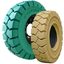 Puncture-proof colored tires for industrial vehicles that do not leave black tire marks on the floor.