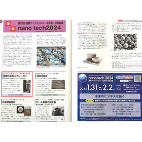 The "FS Micro Electrostatic Spray Gun" is featured in the January issue of the Nikkan Kogyo Shimbun's "New Product Information" magazine, which focuses on nano tec 2024.
