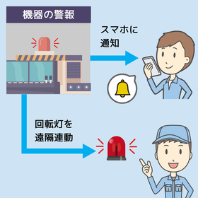 現場で製造機械のランプを見なくても、回転灯やスマホで確認
