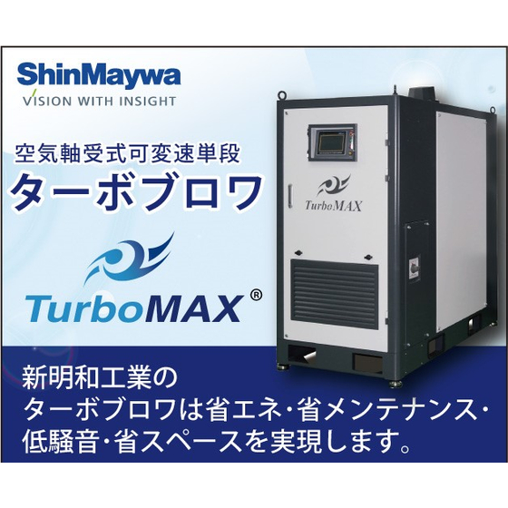 『TurboMAX』は、空気軸受と高効率インペラ、高効率モータの搭載により、 排水処理にかかる電気料金やメンテナンス費用の削減が可能、CO2排出量も 大幅に抑える曝気用ブロワです。 通常のメンテナンスはフィルター掃除のみ、オイルを使わないため、 クリーンな作業環境を保つことができます。 既設入替の際に現状の基礎が利用でき、施設のコンパクト化が建設コストの低減につながります。 【特長】 ■内蔵インバータで必要風量だけを送り無駄な電気を使用しない ■早くて2年程度で初期費用の回収が可能 ■本体入れ替えの際、既存の基礎の利用が可能 ■タッチパネルで操作簡単 ■低騒音のため、防音設備の費用削減にも貢献 ※詳しくはカタログダウンロードもしくはお問合せください。