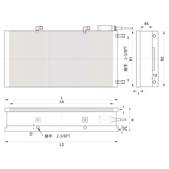 水冷式により、電磁チャックの温度上昇を抑える構造のついた電磁チャック 平面研削盤による研削加工用