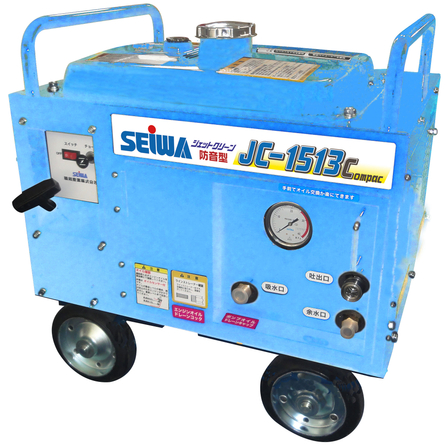 ガソリンエンジン防音型 オイル交換機能付き、サイドガードがないため、車輪周りがスッキリ 水量13ℓで圧力150キロであらゆる現場に対応できるタイプ!