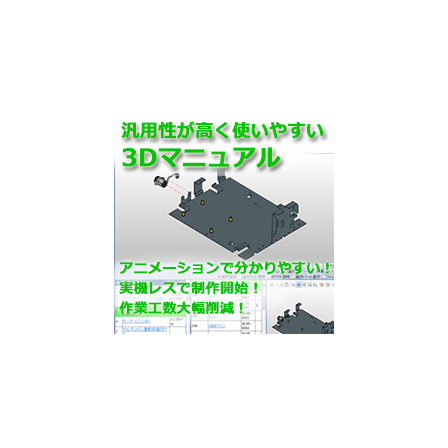 3Dマニュアルは、実機不要なので早く着手出来、設計変更も容易。3D表示や アニメーションなどで見てわかりやすく、インターネットでの共有が可能です。 当資料では、3Dマニュアル導入のご提案をしております。 導入メリットをはじめ、3Dマニュアル導入ポイント、3Dマニュアルによって 削減した予算の有効活用事例などをご紹介しております。 ぜひ、ご一読ください。 【掲載内容】 ■3Dマニュアルのご紹介 ■3Dマニュアル導入のメリット(1)(2)(3) ■3Dマニュアル以外の3Dデータの活用 ■3Dマニュアルの作り方 ■3Dマニュアル導入ポイント ■3Dマニュアルの使い方 ■3Dマニュアルによって削減した予算の有効活用事例 ※詳しくはPDF資料をご覧いただくか、お気軽にお問い合わせ下さい。