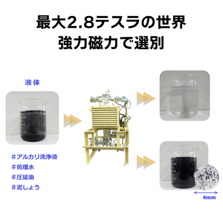 2.8Tの超強力磁力で従来の磁力選別では回収できなかった様々な液体中の磁性物の分離・除去を実現します。