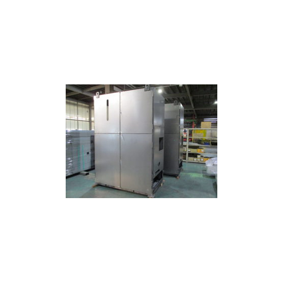 メンテ扉には2分割型のパイプ蝶番を使用しています。扉同士の隙間やメンテフタとの隙間をなるべく均等にした状態で、現合で溶接取付をしています。 製品高さが2600あることから、運送用のトラックはウイングを使用することが出来ません。Assyをせずにメンテナンスカバーやメンテ扉を架台フレームから外して別梱包にすることで、架台フレームを寝かせてウイングのトラックに積み込むことが可能ですが、そうすると、運送時に別梱包したメンテナンスカバーやメンテナンス扉が振動で破損する恐れがあり、また、架台フレームに溶接取付をしたパイプ蝶番も変形や破損する恐れがあるため、平ボディのトラックをチャータして積み込みました。本製品だけだと積込量が荷台に対して3分の1程度と少ないですが、幸い別の製品が近日納期で依頼されており、混載便で出荷する予定でしたが、別製品も積み込むことで、全体の運送料を削減しました。
