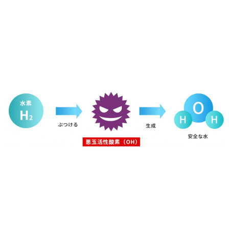 活性酸素には、ばい菌やウィルスをやっつける「善玉活性酸素」と、 DNAや細胞膜を瞬時に破壊する「悪玉活性酸素」があり、「悪玉活性酸素」は 「善玉活性酸素」の100倍の酸化力があるといわれています。 活性酸素の90%程度は細胞内で発生しているといわれており、全細胞の エネルギーの源であるミトコンドリアがATPを生産する際に2%程度の 活性酸素が発生するといわれています。このミトコンドリアがエネルギーを 生成する際に発生する「活性酸素」が細胞を傷つけているのです。 水素は「悪玉活性酸素」の中でも超悪玉であるヒドロキシラジカル(OH)のみを 安全な「水」に変えて無毒化する特長があるといわれています。これは、 水素による無毒化によってミトコンドリア個体へのダメージを軽減することで、 細胞が活性酸素で傷つくことから守っているのではないかと当社は考えています。 ※記事の詳細内容は、関連リンクより閲覧いただけます。 詳しくはPDFをダウンロードしていただくか、お気軽にお問い合わせください。