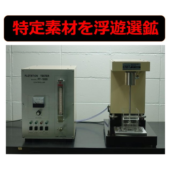 基盤と地金の選鉱、鉱石に含まれる物質調査など。より正確なデータが得られる気体吸込式の浮遊選鉱試験機!